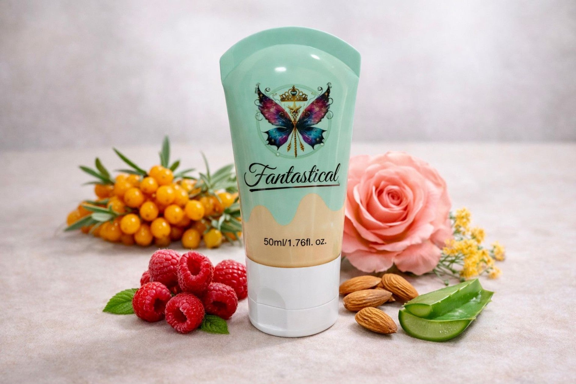 Revive your skin with our sensational lotion, enriched with Sea Buckthorn and Rose oils, plush Raspberry and Almond butters, and hydrating rose water and hyaluronic acid. Say goodbye to dryness and hello to a luxurious self-care treat for a velvety smooth and glowing complexion. The Rambunctious Raspberry and Almond butter concoction will leave your skin feeling replenished, while the resplendent Rose adds a touch of indulgence to each lipid layer. Perfect for clarifying and exfoliating, or simply as a decadent moisturizer, this Libation is sure to bring balance and rejuvenation to all skin types. Let the lushness of Sea Buckthorn reset your skin to a state of luminous grace, while the harmonious blend of organic oils works its magic.